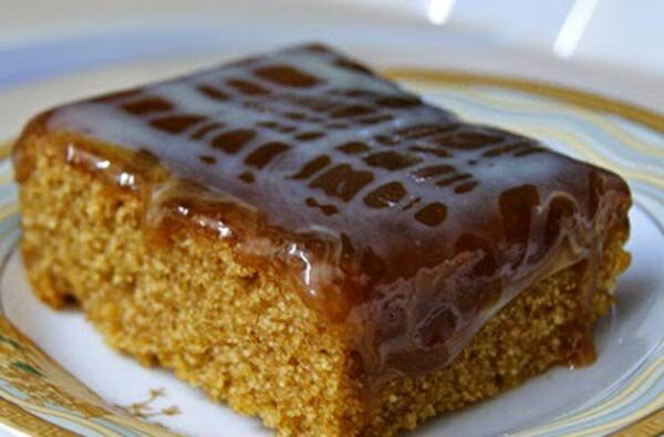 6. نشرب البسبوسة وهي ساخنة بالقطر الساخن وتترك حتى تتشرب.